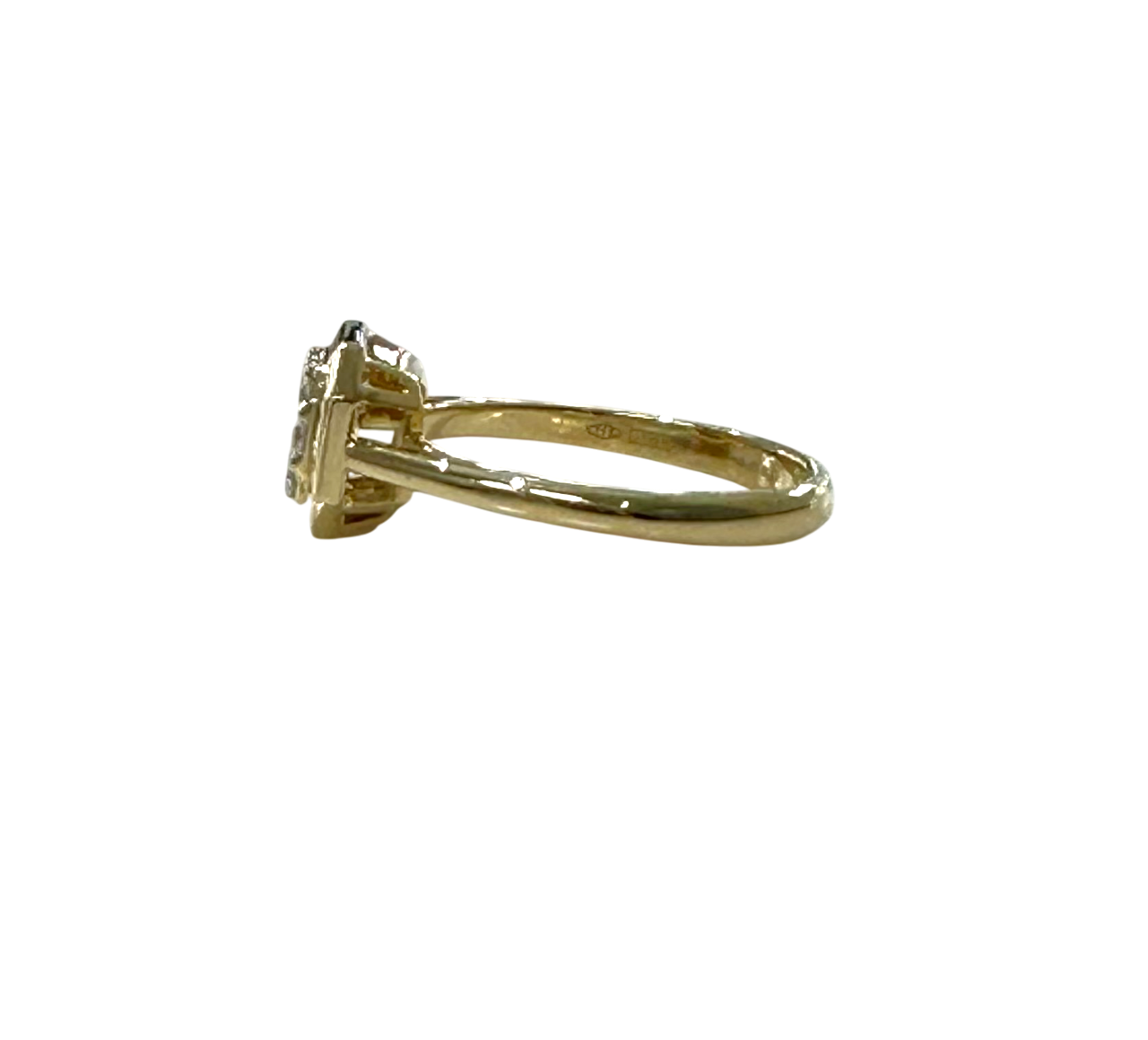 Anello Valentina Callegher con testa ottagonale in oro giallo 18 kt con diamante naturale centrale taglio smeraldo (0,19 ct.)e contorno di diamanti naturali taglio brillante.