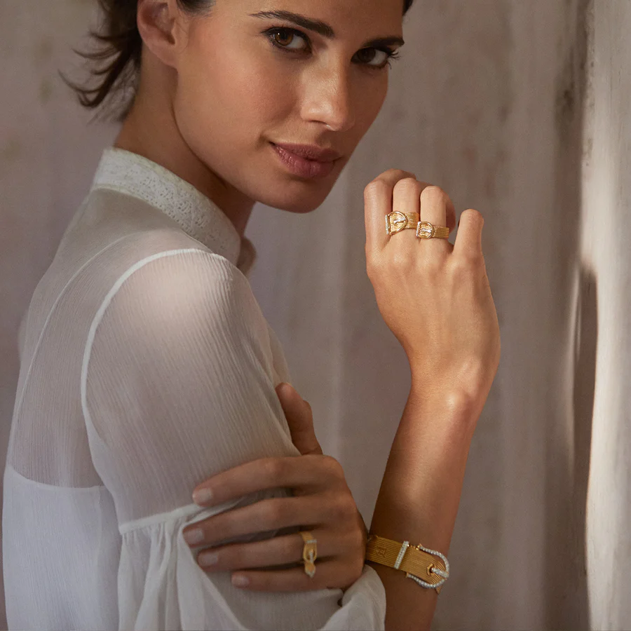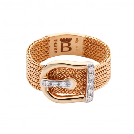 Anello in oro rosa 18 kt con fibbia arricchita da diamanti