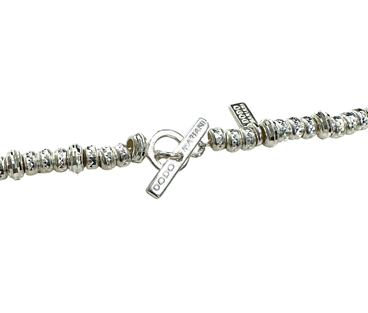 Girocollo catenella con elementi prisma diamantati piccoli e grandi, tutto in argento 925°/°°.