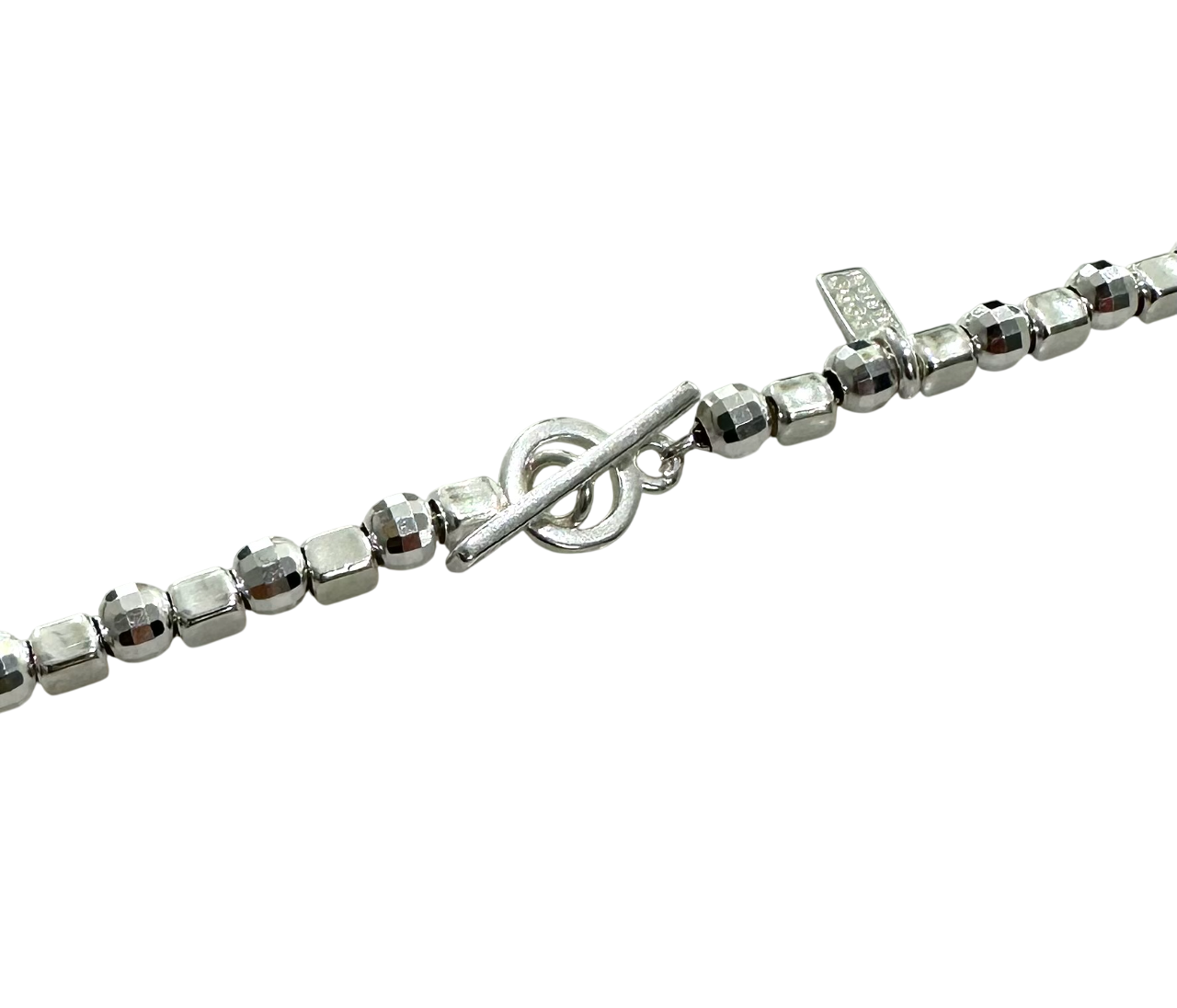 Collana catenella con elementi disco e sampietrini, tutto in argento 925°/°°.